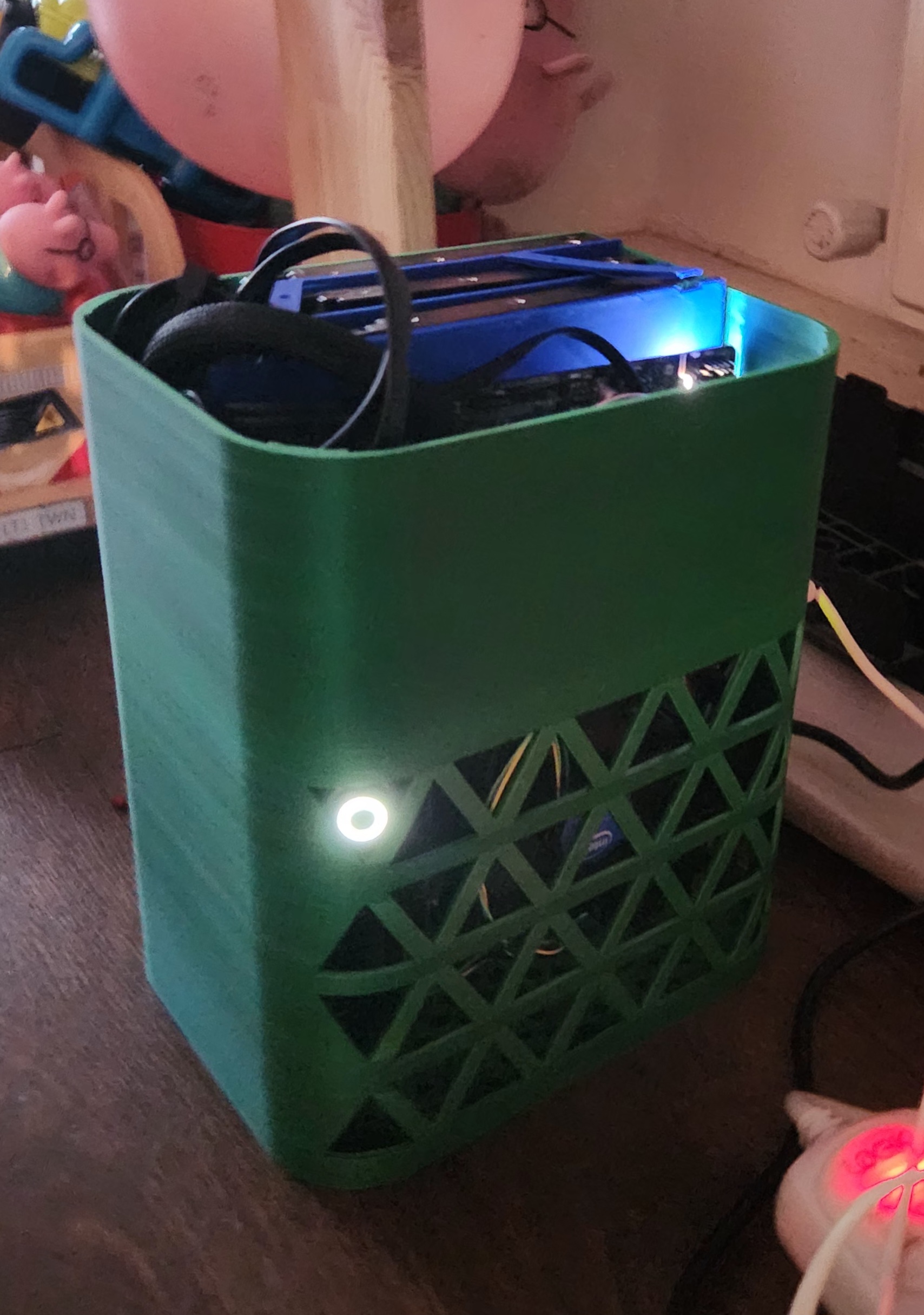 To host this portfolio website, store my files, host product licenses for eirspace, run a VPN and various game servers I needed a simple server. I ended up reusing computer parts I had laying around and incredibly cheap decommissioned server drives to get it up and running as cheaply as possible. Using a normal tower PC case was also out of the question so I designed a case to be 3D printed.