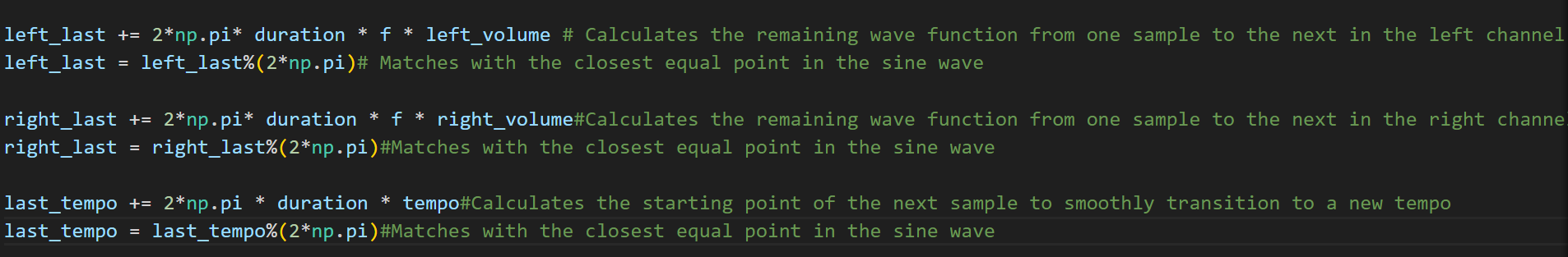 | Week 2. | Researched how to generate audio programmatically as it is being played. Then i developped code to create the audio dynamically. | Struggled sending the audio player the right data type (float32 instead of float64) |